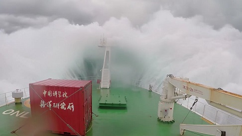 在船上的54天里,我們布放了14套潛標(biāo),回收了11套潛標(biāo),累計(jì)布放803件,回收了294件,其中也包括我們所生產(chǎn)的ADCP。雖然我主要負(fù)責(zé)我們的設(shè)備,但也負(fù)責(zé)了所有的潛標(biāo)布放,而在布放的過(guò)程中,最常見的天氣就是高溫炎熱,因?yàn)榇耙恢痹诔嗟栏浇鳂I(yè),所以船甲板溫度在40度以上,我們常常頂著毒辣的太陽(yáng)在甲板上布放,也讓布放增加了難度,而還有個(gè)自然因素就是以迅雷不及掩耳之勢(shì)襲來(lái)的暴雨,我們經(jīng)常在暴雨中連續(xù)作業(yè),全身都濕透了,也只能頂著暴雨堅(jiān)守戰(zhàn)地。而值得一提的是當(dāng)大風(fēng)以20m/s速度襲來(lái)時(shí),浪花直接拍到了6層駕駛室的玻璃上,仿佛將要把我們吞沒,此時(shí)看著浩瀚無(wú)邊的海洋,一道道波浪不斷涌來(lái),撞擊在船體上,發(fā)出天崩地裂的吼聲,噴濺著雪白的泡沫。是那樣的壯觀。當(dāng)一切都回歸平靜的時(shí)候,又是那樣的云淡風(fēng)輕。