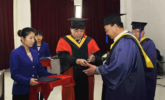儀式在激情洋溢的樂(lè)曲中開(kāi)始。首先大連海事大學(xué)信息科學(xué)技術(shù)學(xué)院自動(dòng)化系主任李暉宣讀首批工程碩士名單。獲得大連海事大學(xué)首批工程碩士名單如下:北方航海公司王洪余、邱琦、范世偉、李忠曄、王德利、宿利楠、李海洋、王曉紅、李娜、儀表公司李鋼、海天科技公司黃帥。每一位畢業(yè)生聽(tīng)到自己的名字時(shí),都沉浸在金榜題名的幸福之中。集團(tuán)團(tuán)委書記黃亮專門為畢業(yè)生們發(fā)來(lái)賀信,并希望集團(tuán)青年員工以他們?yōu)榘駱?,不斷加?qiáng)學(xué)習(xí),努力提高專業(yè)技能水平,增強(qiáng)責(zé)任感和使命感,為給予員工創(chuàng)造良好學(xué)習(xí)和工作環(huán)境的航星集團(tuán)做出更大貢獻(xiàn)。緊接著,11名碩士畢業(yè)生身著學(xué)士服、頭戴學(xué)士帽,在歡快的樂(lè)曲聲中,精神抖擻地走上主席臺(tái)。大連海事大學(xué)信息科學(xué)技術(shù)學(xué)院副院長(zhǎng)曹德信、集團(tuán)黨委書記、董事長(zhǎng)劉義為畢業(yè)生撥流蘇,進(jìn)行學(xué)位授予。當(dāng)工程碩士們從領(lǐng)導(dǎo)手中鄭重地接過(guò)學(xué)位證書的瞬間,激動(dòng)與喜悅之情溢于言表,他們向領(lǐng)導(dǎo)們深深鞠躬致謝。曹德信副院長(zhǎng)發(fā)表了熱情洋溢的講話。他首先祝賀11名工程碩士順利畢業(yè),并為他們?nèi)〉玫某煽?jī)感到驕傲,希望他們?cè)诠ぷ鲘徫簧夏軌蚴冀K堅(jiān)持學(xué)習(xí)、堅(jiān)韌不拔、愛(ài)崗敬業(yè)、腳踏實(shí)地地工作,為航星集團(tuán)的發(fā)展貢獻(xiàn)自己的力量。同時(shí),曹院長(zhǎng)祝愿畢業(yè)生們前程什錦,歡迎常回母??纯?。